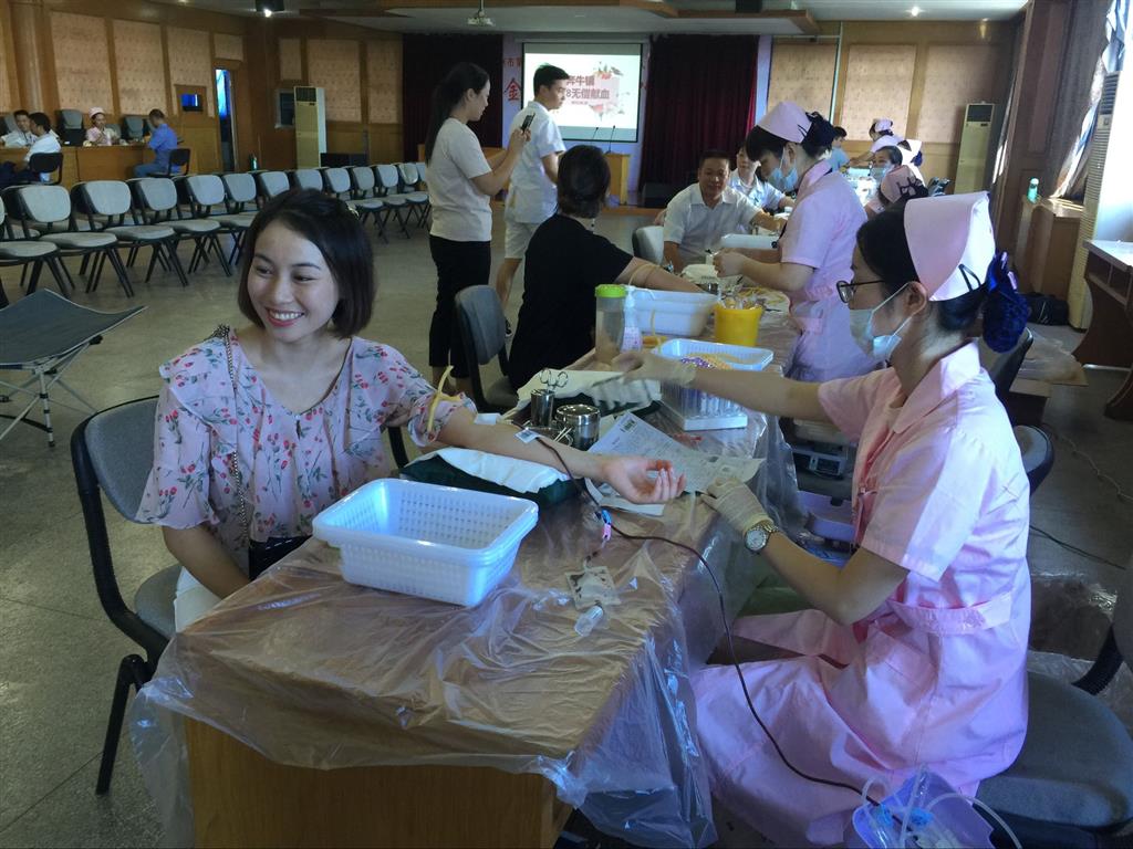 8月29日一大早,艳阳高照,奔小朝气蓬勃的顾多朵老师第一个赶到献血现场轻车熟路地填表、查验、献血,脸上还时时挂着灿烂的笑容!没等她坐下休息,英语组的老将李延霞老师也来到现场,顾不得擦擦额头的汗珠就理立刻填表排队。在李老师等候查验时,沉静温柔旳史云芳老师,献完血还要急着赶回学校开会的中层领导谢燕、祁洁萍老师,英语组的元老——顾华娟老师,身体瘦弱还坚持献血的赵庆老师,已经累计献血1000ml的巾帼谢迪老师,文静甜美的徐敏艳老师也都顶着烈日赶到现场,她们一边谈笑以缓解紧张,一边有序地排队等待献血。最牛的还数眭海兰老师,当护士询问:“300吧?”“不, 400ml。我每次都是400!”睢老师坚定地回答道。旁边的男士听到了都露出惊讶钦佩的表情。