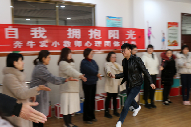 虽然大家都是同事,但对于刚分进来的新教师还不是太熟悉,参加活动的老师们就像幼儿园的孩子那样,顶顶大拇指,握握手,猜猜拳,说句“很高兴认识你”。在春风与阳光里,在欢乐与温馨里,开启了“悦纳自我,拥抱阳光”的心理团体辅导活动。