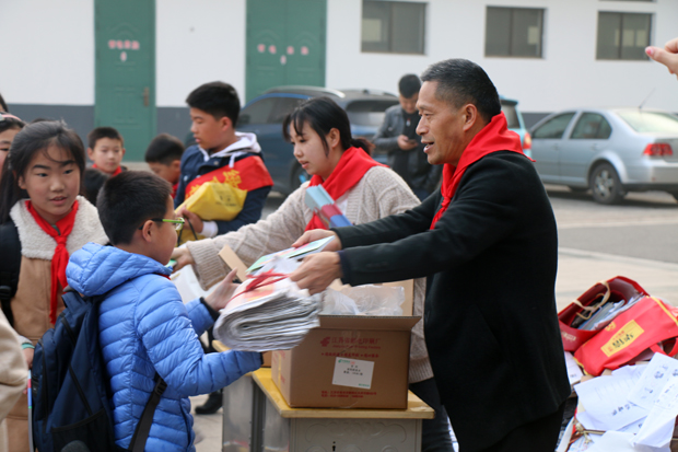 3月19日清晨,奔牛实小学子们背着书包,带着收集好的废旧报纸报刊,书籍作业本等,或捧着、或抱着、或拎着,一进校门,便迫不及待地来到活动现场换取家校联系本,低年级的孩子在家长的陪同下,兴高采烈地接过崭新的联系本,有的一拿到手便津津有味地看起来。只见,联系本内容丰富,主题明确,每隔几页还有生动有趣且富有内涵的漫画!这样有意思的活动,怎能少了我们家委会和志愿者们,大家各显其能,或娴熟地发放联系本,或有序地维持着现场,或主动地接过孩子们手中的废纸,家委会主任陈叔叔早早地来到活动现场,震撼的场面让他情不自禁地发挥职业本能,现场指挥起来;这样有意义的活动,更离不开学校领导的重视和大力支持,杨文荣校长活动前密切关注,更在现场与各部门主任和青年团员教师一起,亲力亲为。看着家长们的热情劲,孩子们的热闹劲,在场的老师们和志愿者们都表示,这个活动以后还会一直“热”下去,并有效提升少先队员的养成教育、法律素养、自护能力和环保观念。