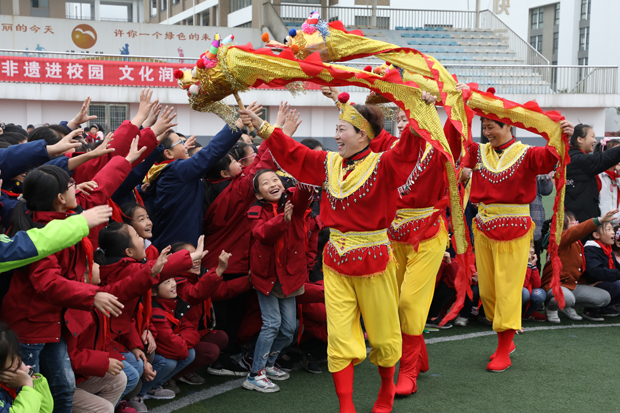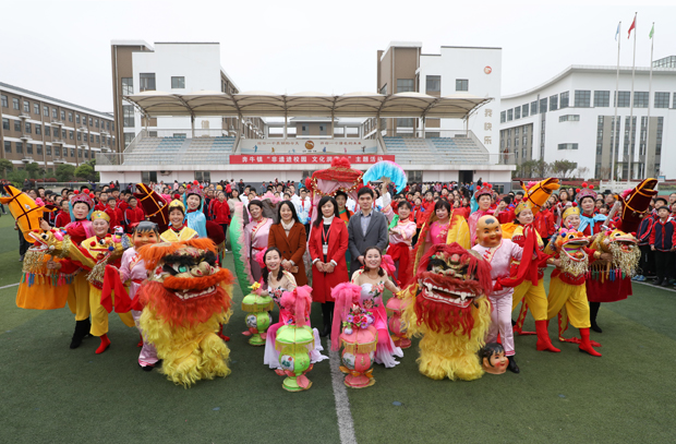 绽放异彩的舞龙舞狮、别有风味的花挑舞、边走边舞的跑马灯、幽默诙谐的大头娃娃、吸睛无数的荡湖船、一张一合的“蚌壳精”等非遗代表性项目一一展现在师生面前,现场热闹非凡,独具特色的表演令孩子们大饱眼福,老师们在拍手叫好的同时纷纷表示这些传统民俗活动现已非常少见,对于现在的孩子们来说这是个千载难逢的学习机会,他们需要接受这样的传统文化熏陶和教育。