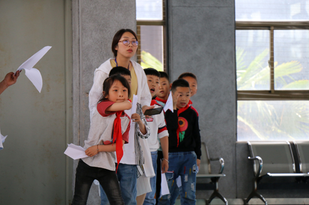 不一会儿,每个人都拿着自己精心制作的纸飞机准备放飞,只听裁判们一声令下:“可以放飞!”选手们就迫不及待地对着飞机头哈一口气,好像在给飞机充电,然后铆足了劲儿将纸飞机掷了出去,希望自己的飞机飞得是最远的。一架架纸飞机承载着孩子们的梦想,带着夺冠的必胜决心飞向篮球馆的上空。