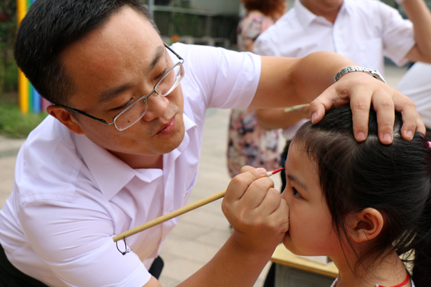 清晨,奔牛实小的老师们精心准备,在绿意盎然的智慧大门前,铺上了红色的地毯,就等孩子们的闪亮登场。看,沐浴着清晨的第一缕阳光,家长们牵着孩子的手走过启智门,开启了孩子们的智慧学习之旅;“朱砂启智开天眼”,奔牛实小杨文荣校长和其他学校领导也亲自上阵,为可爱的孩子们点朱砂,开启智慧,祝福奔小学子们从此眼明心亮,前途一片光明;可“贵”天下父母心,一双双殷切的目光,一张张灿烂的脸庞,无不让人激动……“我是小学生啦!”难忘的日子,镜头定格下这珍贵的时刻,多年以后,这些照片一定是家长们和孩子们最珍贵的回忆。