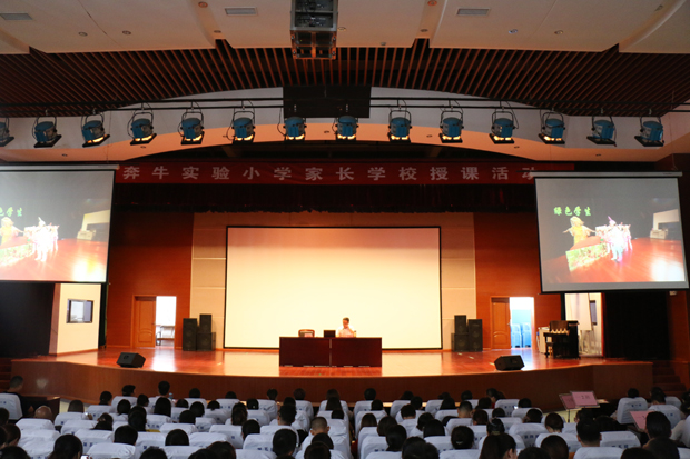 在奔牛实小报告厅,言志国副校长以“让每个生命自然和谐地成长”为主题,开展了活动的第一环节。首先,言校长从学校历史、现状、荣誉及亮点与特色五个方面向家长们全面介绍了奔牛实小这所百年老校。学校秉承“朴实而宽厚”的校训,大力实施“自然、和谐、发展”为核心的新绿色教育,连续十三次获得武进区素质教育评估一等奖。连续三年获得新北区教学质量综合评估一等奖。接着,言校长还重点从德育、课程、课堂、体育和科技五个方面向家长介绍了奔牛实验小学的发展特色与亮点,向在座的家长们充分展示了奔牛实验小学丰厚的文化底蕴和蓬勃发展的美好前景。在授课期间,家长们还观看了根据奔牛实小老师真人真事改编的电视片《拯救邓小贝》。让家长们看到了奔牛实验小学老师们的无私奉献,大家放心地把孩子交到学校,相信自己的孩子在这样的校园,有这样优秀的老师,一定会健康茁壮地成长。
