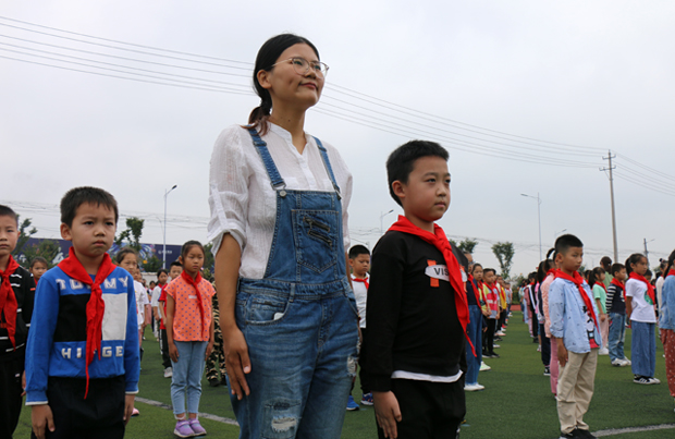 随着国歌响起,五星红旗随风飘扬,庄严的升旗仪式开始了,隆重而有教育意义的开学典礼也随之拉开了序幕。首先,六9中队的刘梦扬以《开学第一课》“五星红旗,我为你自豪”这个主题为契机,号召全体奔小人与祖国同行,争做新时代光荣的护旗手!接着,奔牛实小杨文荣校长寄语全体队员:一是要立志向有梦想;二是要有勇气敢奋斗;三是乐创造向未来。杨校长的谆谆教诲不仅饱含着校领导对同学们的愿望,更为奔小的确立的新学期的方向,让师生们备受鼓舞和激励。活动在悦耳动听的长笛合奏中接近尾声,骆艳芳、臧海奕、李敏三位老师和沈熙、邵天烁两位队员的小合唱《我和我的祖国》把整个活动推向了高潮,整个开学典礼在祥和、热烈的氛围中结束。