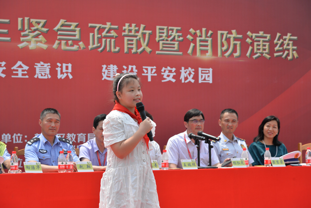 奔牛实验小学杨文荣校长强调校车安全承载着家庭的希望,扎实做好校车安全工作是我们的责任和义务。而奔牛实验小学始终坚持‘五个完善’和 ‘三个一’ 扎实推进安全工作。区消防救援大队副大队长梁吉荣说:“学校是消防安全责任主体,要严格落实各项消防安全检查制度,定期更新不合格的消防装备,定期培训教职工正确规范使用消防装备,定期组织开展疏散逃生和灭火救援演练,不断提高全体师生的消防安全意识。”教育局杨仁元副局长叮嘱:“除了消防安全,各中小学还要特别重视食品、交通、疫情防控、防溺水等安全教育;同时,还要进一步重视校园内外的环境安全和学生心理安全。”在教育局副处长王瑞琛的一声令下,演练正式开始,分为三个环节。