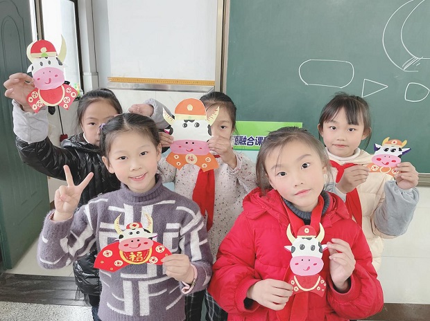 伴随着期末考试铃声的结束,1月22日下午,奔牛实验小学地球村之生肖“牛文化”主题融合期末课程在全校如火如荼的展开了。此次活动以新绿教育理念为指导,以培养学生“好品行、善学习、绿生活、乐创新,显活力”为目标,在学生了解我国生肖文化的历史的基础上,倡导“德、智、体、美、劳”五育并举教学设计方针。
