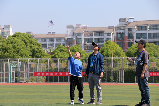 比赛当天,在奔牛实小操场上,选手们全情投入,赛出成绩,赛出水平,赛出风格,赛出精彩。看,候场区的选手们有的目不转睛地看着赛区,有的在讨论着比赛的技巧,还有的在全神贯注调试模型。比赛选手胸有成竹,一展身手。“我要起飞!”“可以起飞!”一架架飞机模型在运动员们巧手的点拨下,乘风而起,扶摇直上。有的稳稳当当,似翩翩飞舞的鸟儿,飞了好长时间才缓缓坠落;有的盘旋升起,在灿烂的阳光下,悠闲地与蓝天白云握手言好;有的一飞冲天,遥遥地越过草坪,越过了大楼……田径场上的飞机在蔚蓝的天空下“此起彼落”,带着孩子们的期待,载着科学的梦想,快乐追逐,自由翻飞。