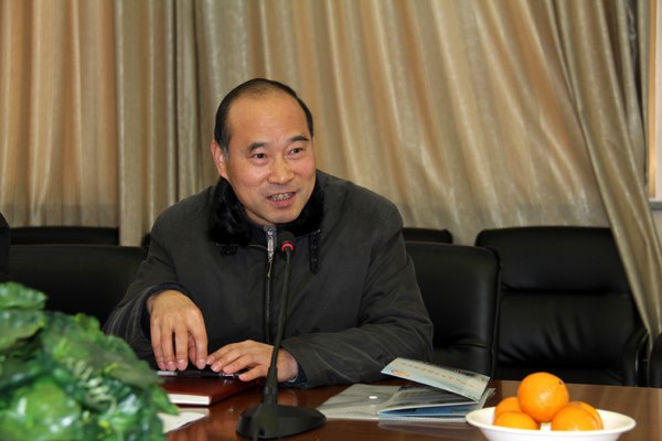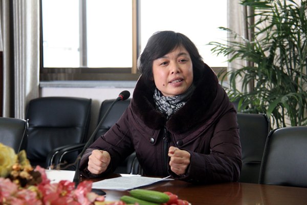 解放英副校长向测评组汇报档案室晋级以来的情况