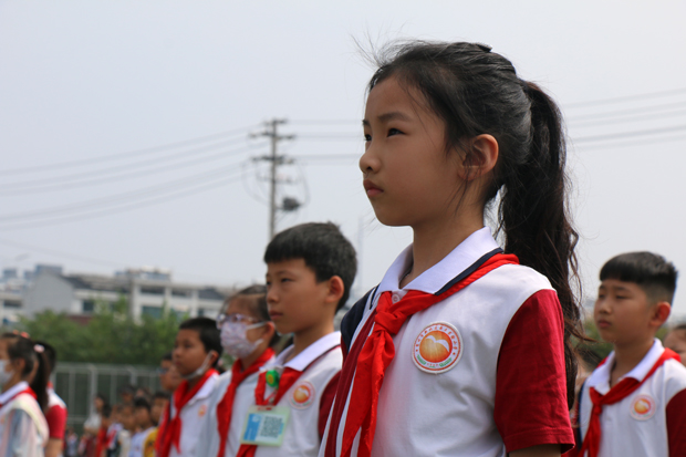 伴随着冉冉升起的国旗,队员们敬着标准的队礼,激情澎湃的高唱国歌,表达自己的爱国之心,努力向上之心。