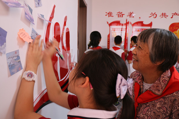 最后,活动在庄严的退旗仪式中落下帷幕。带着期待,各委员还和队员们一起来到社区少工委活动室。驻足在昔日的活动照片前,大家不禁感叹那些有趣的活动和难忘的画面。在队员代表的感召下,所有队员代表兴奋地在心愿墙上,写下对党的二十大顺利召开的祝福!