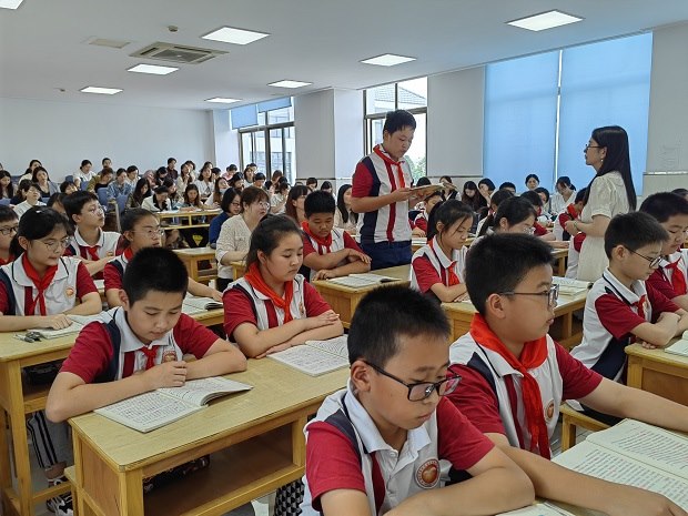 雨后风凉暑气收,庭梧夜夜报初秋。 阳光明媚的初秋时节,奔牛实验小学的全体语文老师相聚多媒体教师,开展“新课标单元统整教学”为主题的语文教研活动。