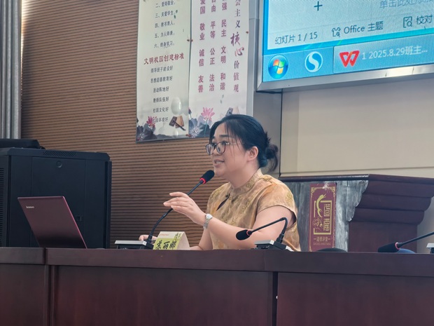为保障开学工作平稳推进,学生中心副主任王晓娟聚焦开学迎新关键环节,不仅细致讲解注意事项,更对新学期班主任工作提出明确要求。她现场解读“新绿班级劳动岗位表”,明晰分工;提醒开学报道流程,并做好各类材料收缴的清单化管理,为新学期班级工作筑牢基础。