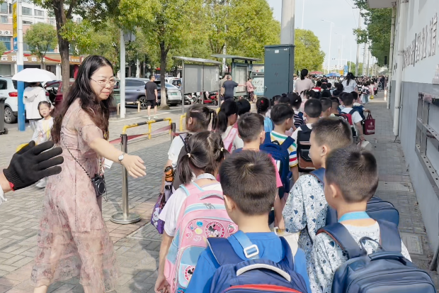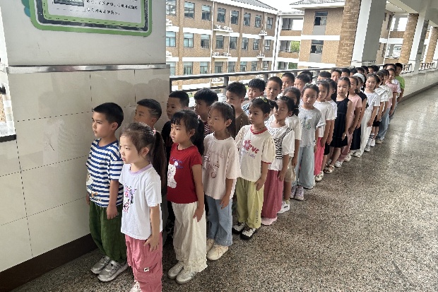 “这里是饮水区,接水要排队。”“这是老师办公室,进门记得说‘报告’。”班主任和配班老师带着孩子们穿过长廊、走过操场、认识卫生间和书法长廊等各个功能区域。孩子们一边走一边小声讨论,像极了一群探索迷宫的小冒险家。在走走停停中,陌生的校园渐渐变得熟悉安全、可亲可爱。