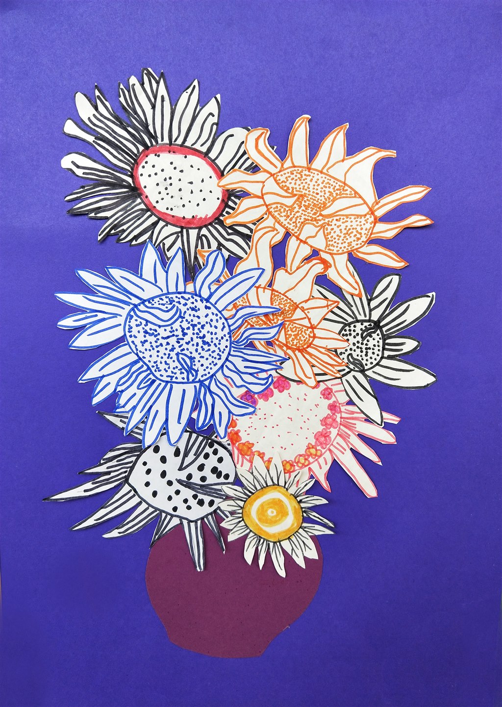 小朋友的向日葵朵朵花儿向阳开,他们虽然笔法稚嫩,却能从形态多姿的花儿里看到他们的阳光快乐。他们是快乐的,在美术课堂上想象可以随着画笔一起去旅行,画出他们的世界,画出他们的活泼。他们是幸福的,你瞧,每一朵向日葵都有着不同的形态,就像在不同课程中的他们,或静或动,或唱或演,奔牛实小给了每个孩子一个成长的舞台。